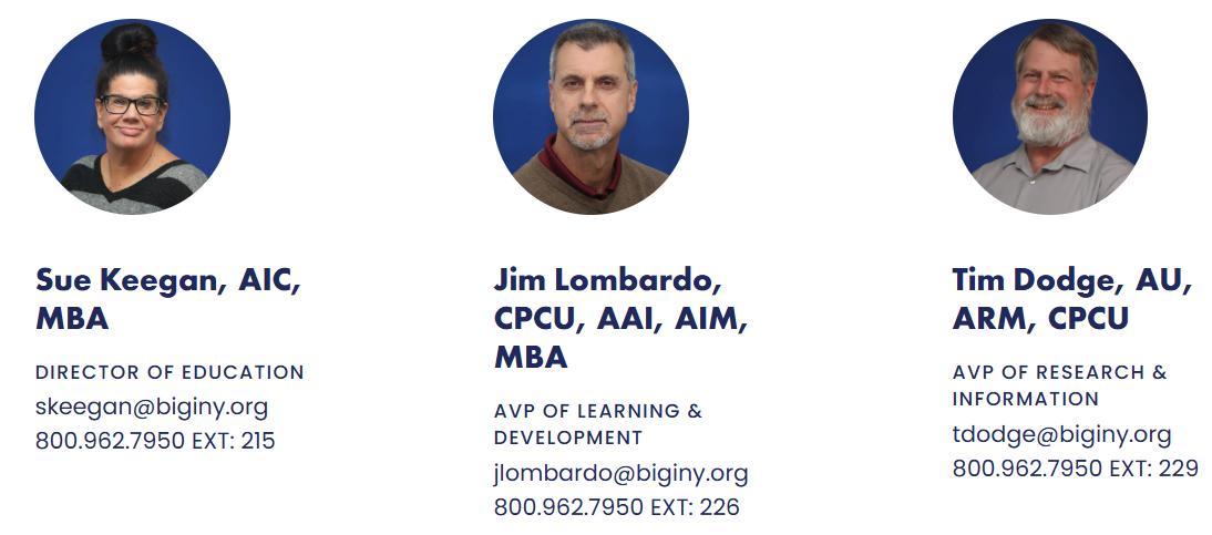 - Jim Lombardo, CPCU, AAI, AIM, MBA, AVP of Learning & Development